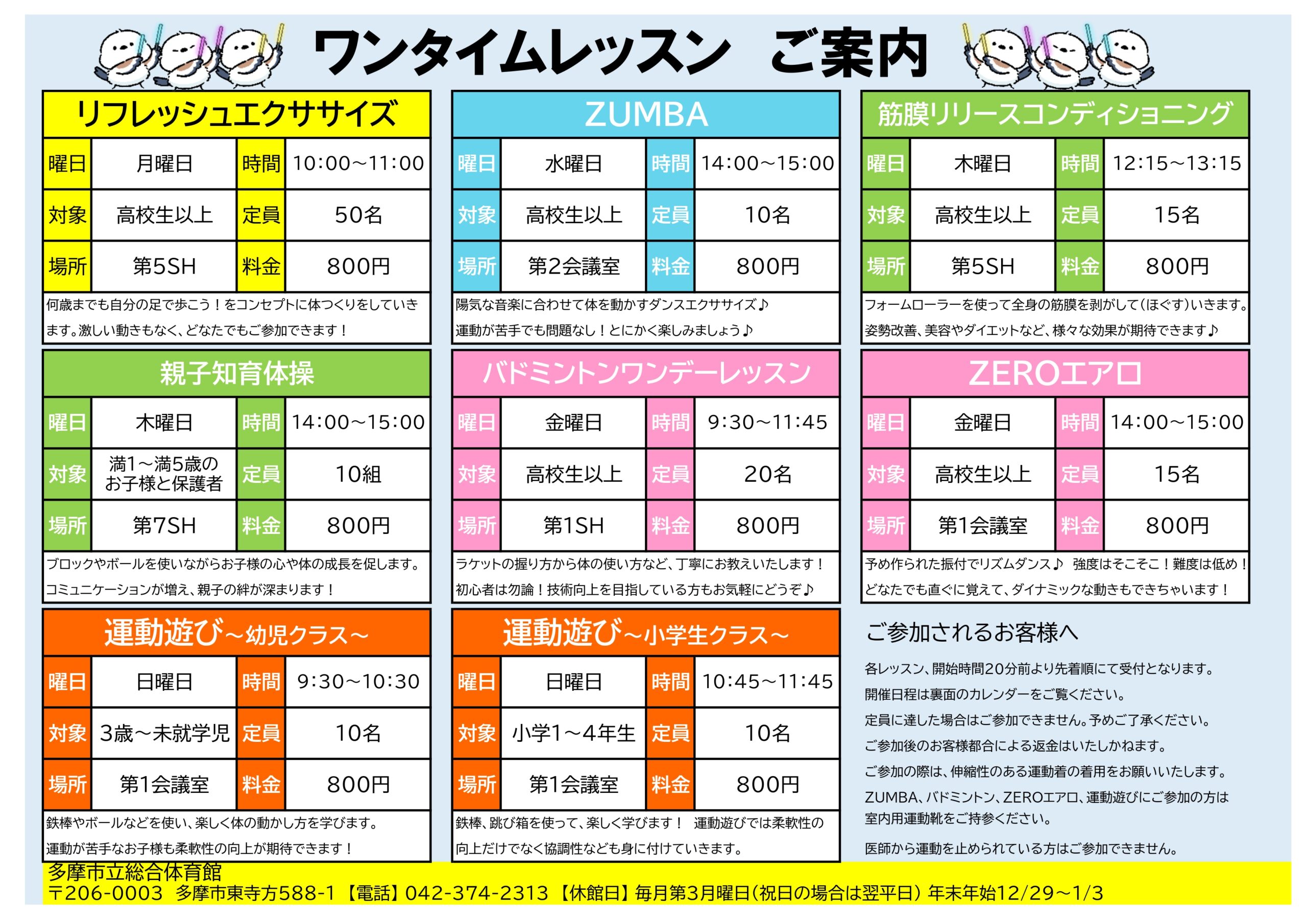 - 2026.01.15 2月ワンタイムレッスン日程【体育館】